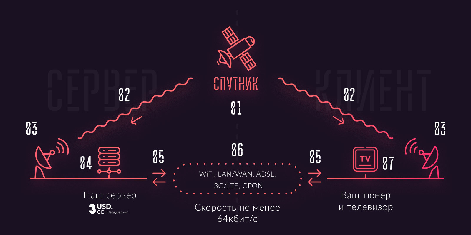 Кардшаринг (Card Sharing), дословно «делиться картой» — это метод, благодаря которому ваш независимый ресивер получает доступ к просмотру платных каналов спутникового или кабельного телевидения, используя нашу карту доступа.